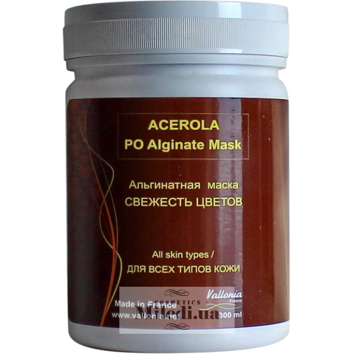 Альгинатная маска для лица рекомендована для восстанавливающего ухода за кожей с признаками купероза, обезвоженности. Она основана на натуральном экстракте ацеролы.