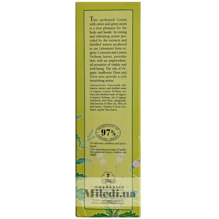 Освежающий крем радует цитрусовым ароматом. Его использование дарит приятное удовольствие для кожи. Тонизирующий эффект крема с цитрусовыми и зелеными нотками вербены получен с помощью экстрактов и дистиллированной воде.