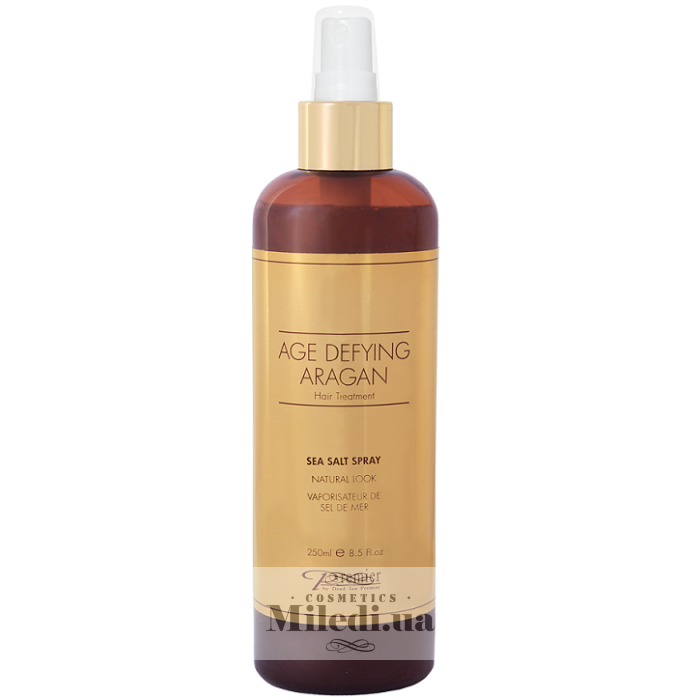 Антивозрастной спрей обогащен морской солью и 100% маслом арганы. Использование придает волосам блеск, гладкость и шелковистость.