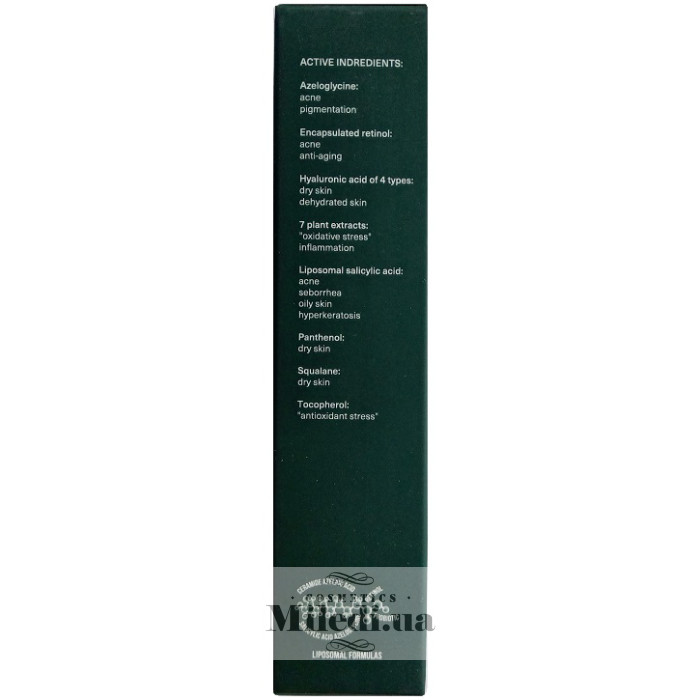 - Эффективное лечение акне – липосомированная салициловая кислота глубоко очищает поры, борется с воспалениями и черными точками.