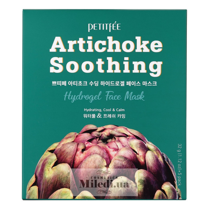 Гидрогелевая успокаивающая маска Petitfee с экстрактом артишока, 5 шт