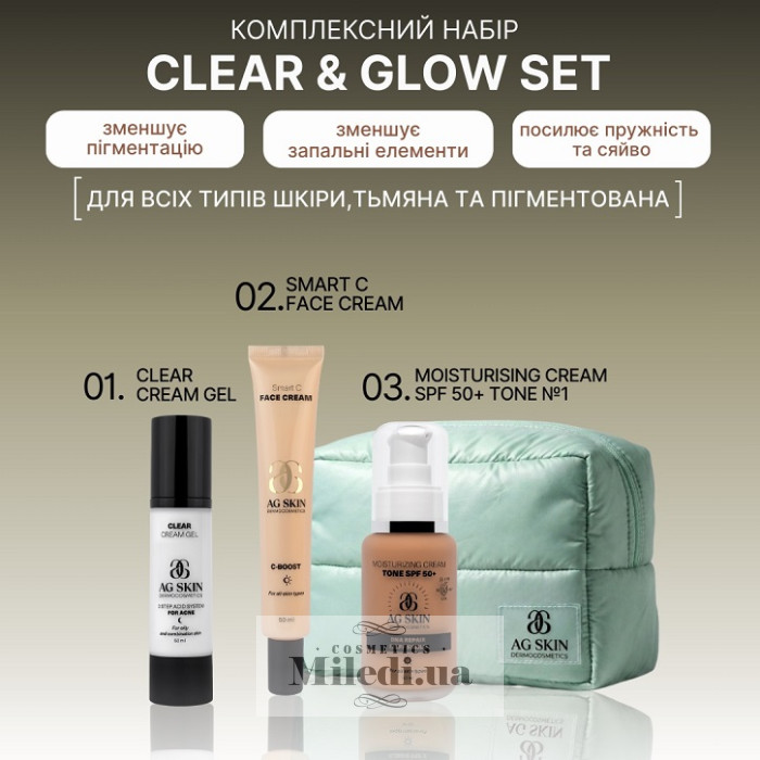 Комплексный набор AG SKIN для чистой и сияющей кожи, 50 мл + 50 мл + 50 мл