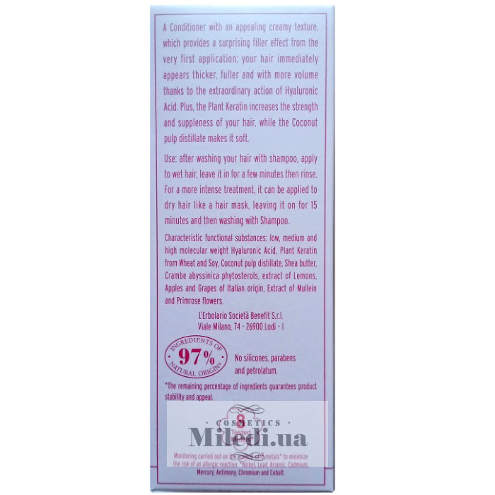 Кондиционер для волос L'Erbolario с гиалуроновой кислотой, 150 мл