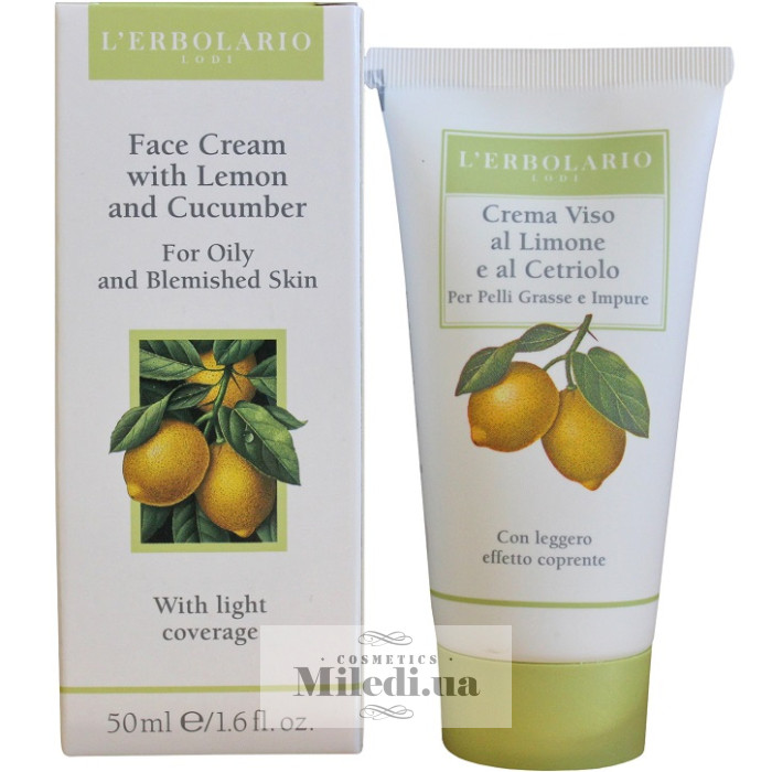 Крем L`Erbolario с лимоном и огурцом с легким эффектом крем-пудры, 50 мл