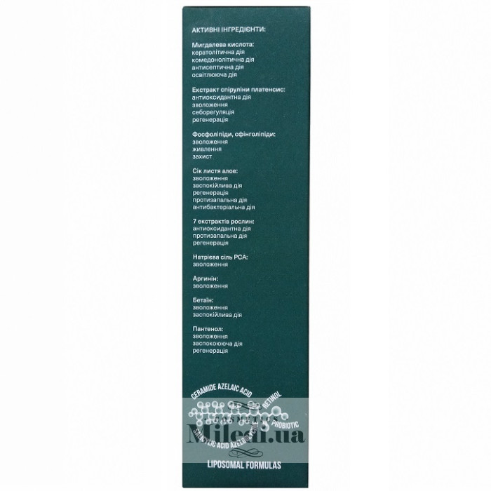 - Экстракт спирулины: регулирует выработку себума, уменьшает жирный блеск и способствует восстановлению кожи.