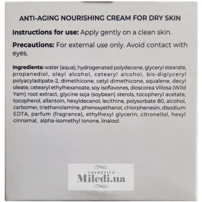 Питательный крем особенно подходит для восстановления ослабленной, атоничной сухой кожи лица с признаками старения.