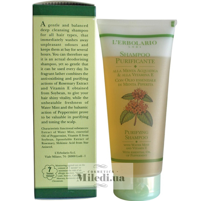 Шампунь для глубокого очищения L`Erbolario с мятой и витамином Е, 200 мл