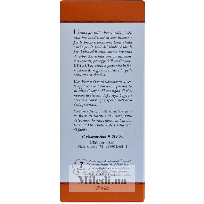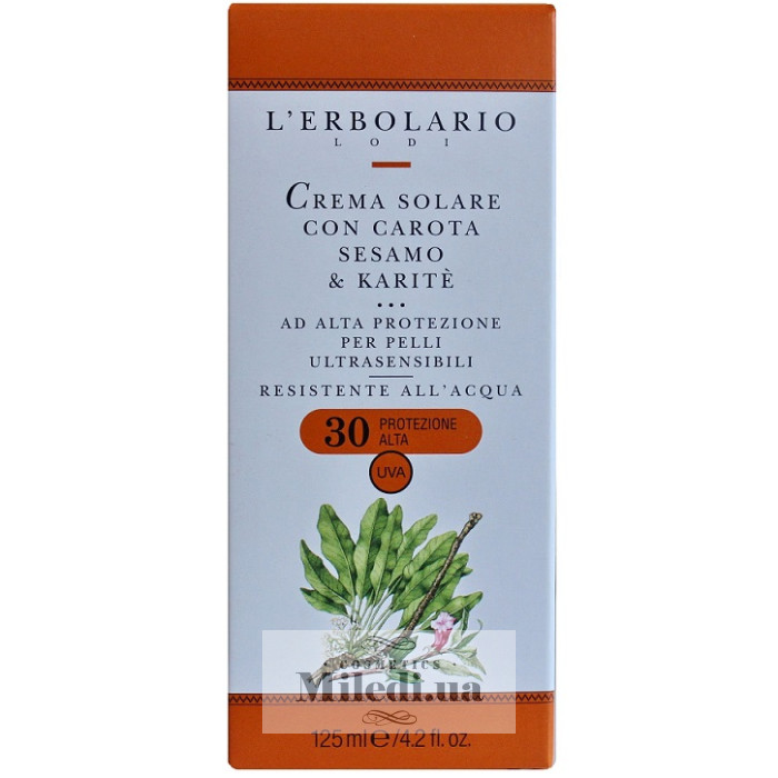 Солнцезащитный крем L`Erbolario с морковью маслом кунжута и маслом ши, 125 мл