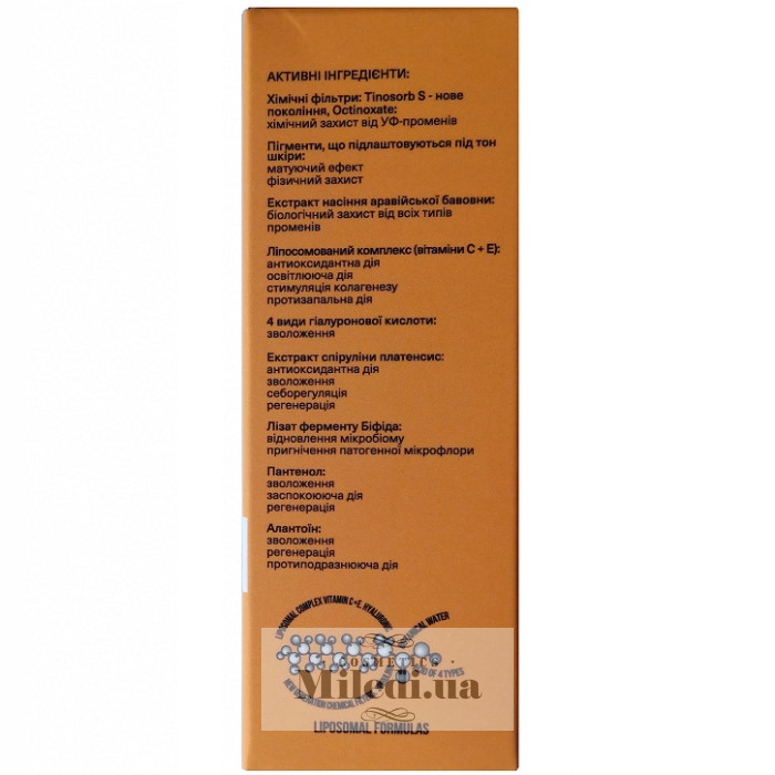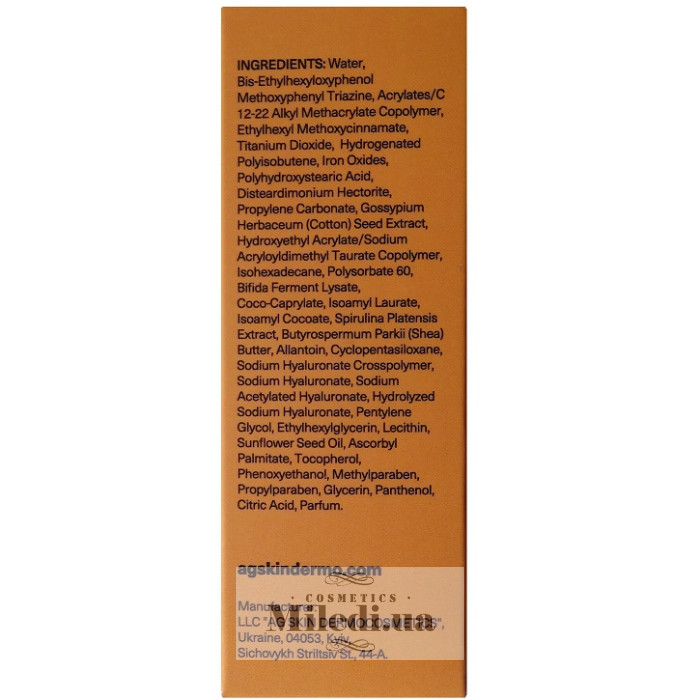 Water, Bis-Ethylhexyloxyphenol Methoxyphenyl Triazine, Acrylates/C 12-22 Alkyl Methacrylate Copolymer, Ethylhexyl Methoxycinnamate, Titanium Dioxide, Hydrogenated Polyisobutene, Iron Oxides, Polyhydroxystearic Acid, Disteardimonium Hectorite, Propylene Carbonate, Gossypium Herbaceum (Cotton) Seed Extract, Hydroxyethyl Acrylate/Sodium Acryloyldimethyl Taurate Copolymer, Isohexadecane, Polysorbate 60, Bifida Ferment Lysate, Coco-Caprylate, Isoamyl Laurate, Isoamyl Cocoate, Spirulina Platensis Extract, Butyrospermum Parkii (Shea) Butter, Allantoin, Cyclopentasiloxane, Sodium Hyaluronate Crosspolymer, Sodium Hyaluronate, Sodium Acetylated Hyaluronate, Hydrolyzed Sodium Hyaluronate, Pentylene Glycol, Ethylhexylglycerin, Lecithin, Sunflower Seed Oil, Ascorbyl Palmitate, Tocopherol, Phenoxyethanol, Methylparaben, Propylparaben, Glycerin, Panthenol, Citric Acid, Parfum