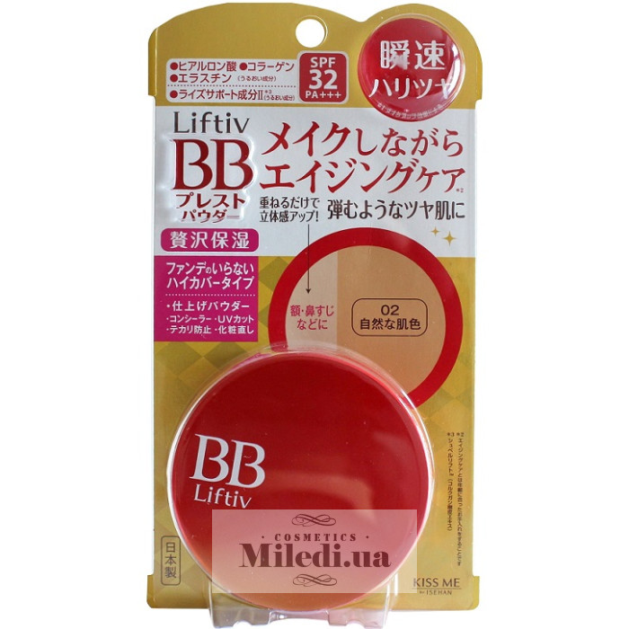 ББ пудра від японського бренду поєднує функції макіяжу і антивікового догляду за шкірою. Вона має також сонцезахисний фактор й гіпоалергенний склад. Компактна бб-пудра містить зволожуючі та омолоджуючі компоненти.