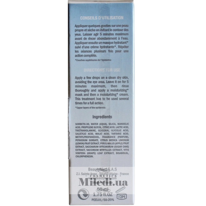 Час дії - максимум 5 хвилин, після чого змити пілінг і нанести крем. Після процедури обов'язкове застосування сонцезахисних засобів.