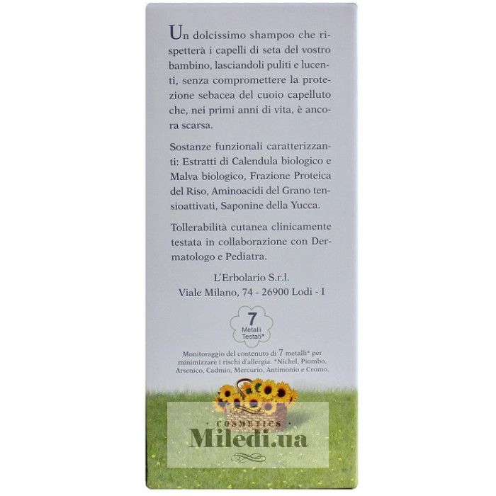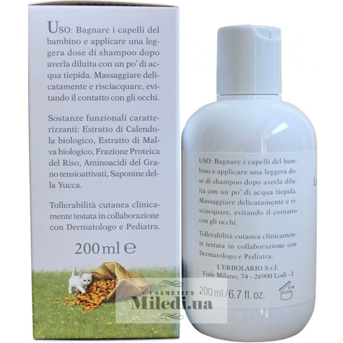 Дитячий шампунь L`Erbolario з календулою рисом та мальвою, 200 мл