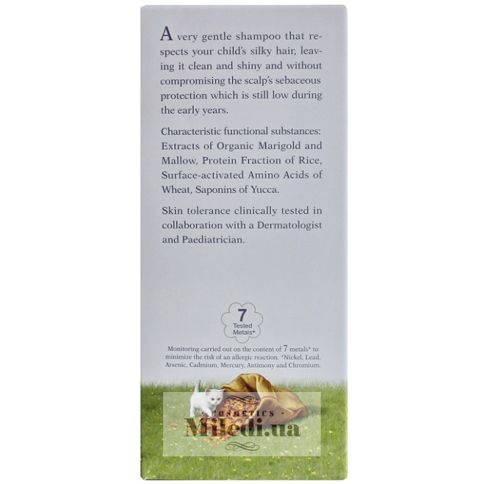 При очищенні шампунь м'яко захищає поверхневий шар волосистої частини голови малюка.
