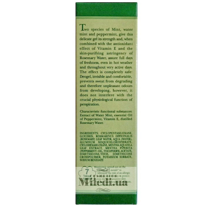 Дезодоруючий гель призначений для гігієнічного догляду за всім тілом. Він забезпечує тривалу дію проти поту. Італійський дезодорант ефективно впливає на шкіру пахв протягом усього дня, не порушуючи фізіологічний процес потовиділення.