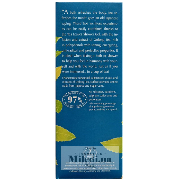 Ароматна піна для ванни чудово освіжає тіло, наче тонізуюча гаряча чашка чаю. У його складі - розкішний чай багатий на поліфеноли. Цей гель стане чудовим засобом для щоденного спа-догляду.