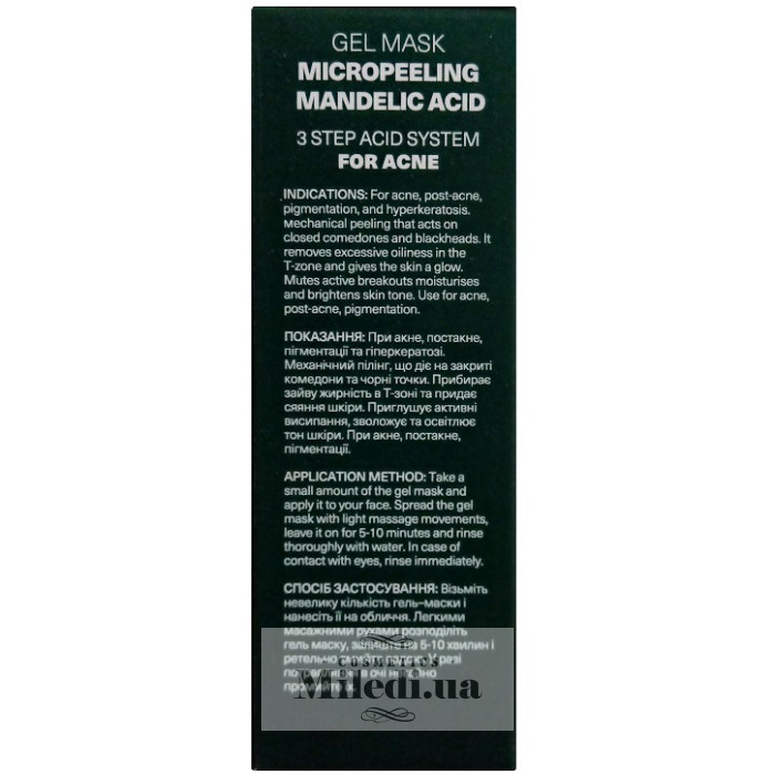 - М’яке відлущування – мигдалева та саліцилова кислоти сприяють очищенню пір, вирівнюють тон і рельєф шкіри.