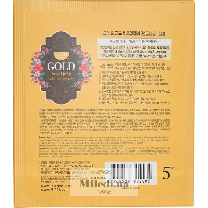 Гідрогелева маска Koelf з золотом і маточним молочком, 5 шт
