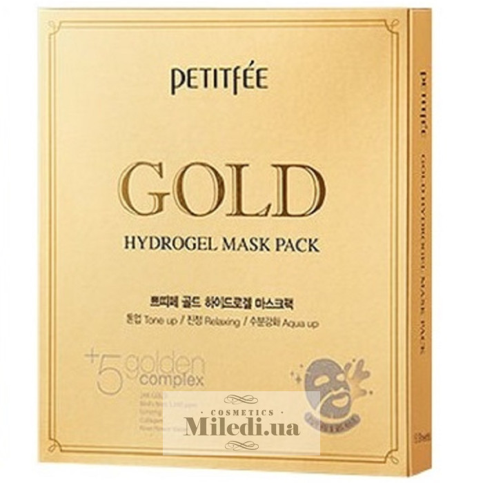 Гідрогелева маска Petitfee з золотим комплексом +5 для обличчя, 5 шт