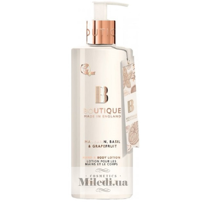 Лосьйон «Мандарин, базилік і грейпфрут» підтримує оптимальний рівень вологи в епідермісі та надає додатковий пом'якшувальний догляд за шкірою.