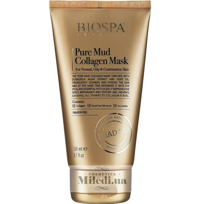 Маска збагачена 100% екстрактом водоростей Dunaliella та оливковою олією. При її використанні шкіра отримує глибоке очищення та догляд. Грязьова колагенова маска надає омолоджуючу та мінералізуючу дію на епідерміс.