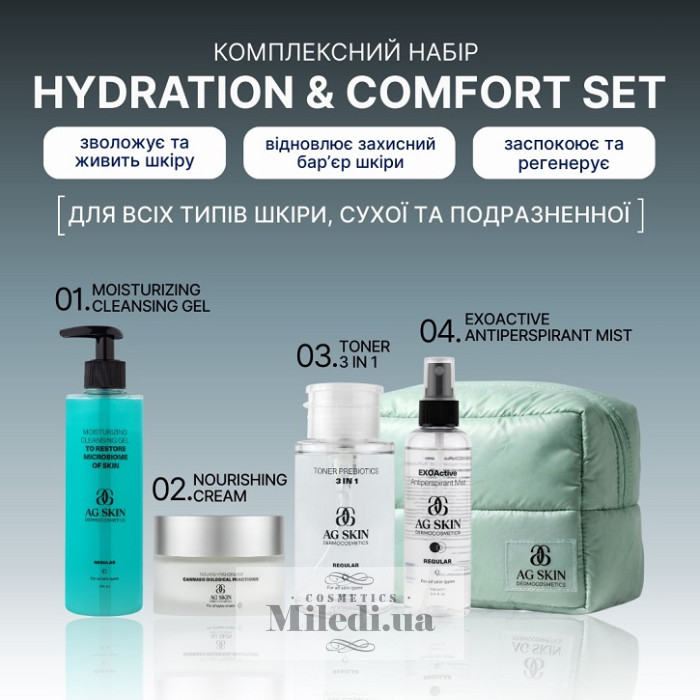 Комплексний набір AG SKIN Зволоження та комфорт, 50 мл + 100 мл + 200 мл + 230 мл