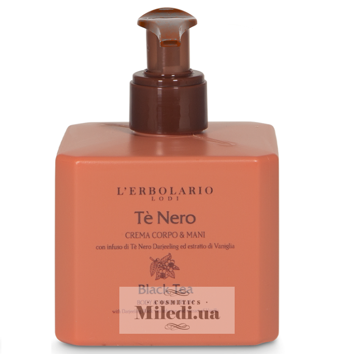 Ароматна крем-емульсія з рідкою текстурою для догляду за руками та тілом укладена в елегантний флакон із практичним мірним дозатором. Його основні інгредієнти – настій та екстракт чорного чаю Дарджилінг та екстракт ванілі.