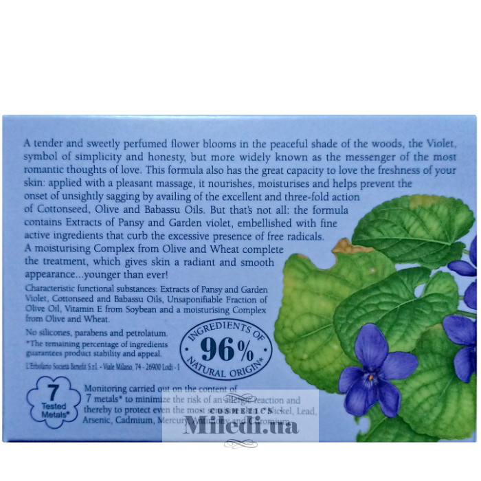 Зволожуючий крем має ніжний та витончений фіалковий аромат. Він збагачує шкіру живленням та зволоженням. У крема - ніжна, м'яка текстура.