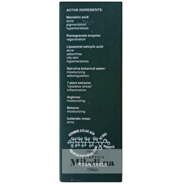 - Азелаїнова кислота – освітлює пігментні плями, бореться із запаленнями, має антибактеріальний ефект