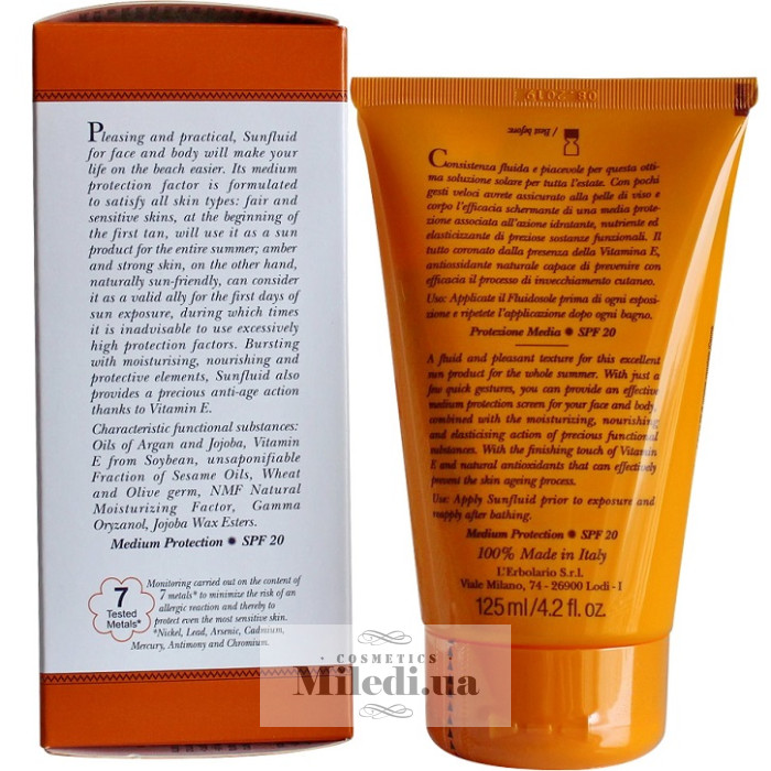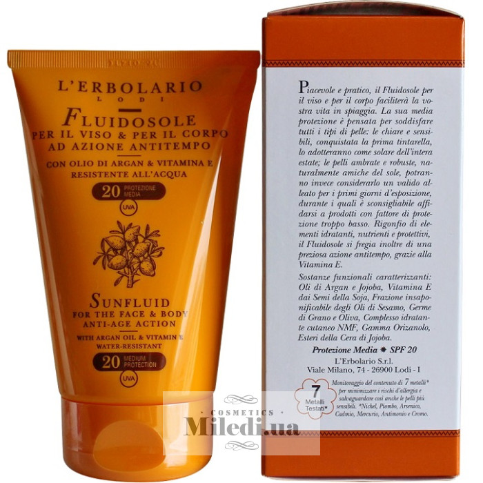 Сонцезахисне молочко для засмаги має потрійну дію на шкіру. Воно інтенсивно зволожує та пом'якшує шкірний покрив обличчя та тіла. Крім того, молочко має фактор захисту від сонця (SPF20), а також посилює сонячну засмагу, робить її стійкою.