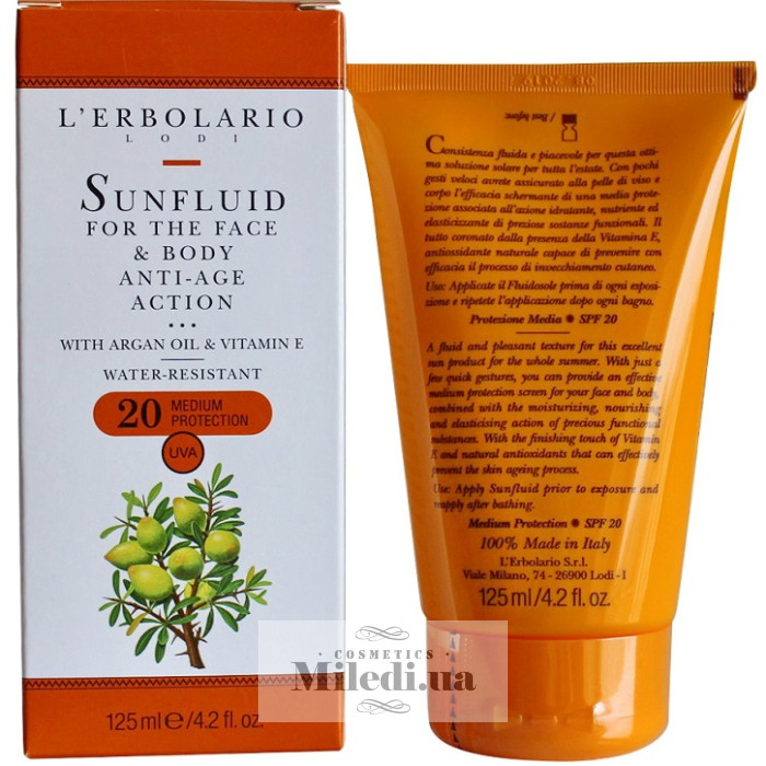 Молочко для засмаги L`Erbolario з маслом арганії та вітаміном Е SPF20, 125 мл