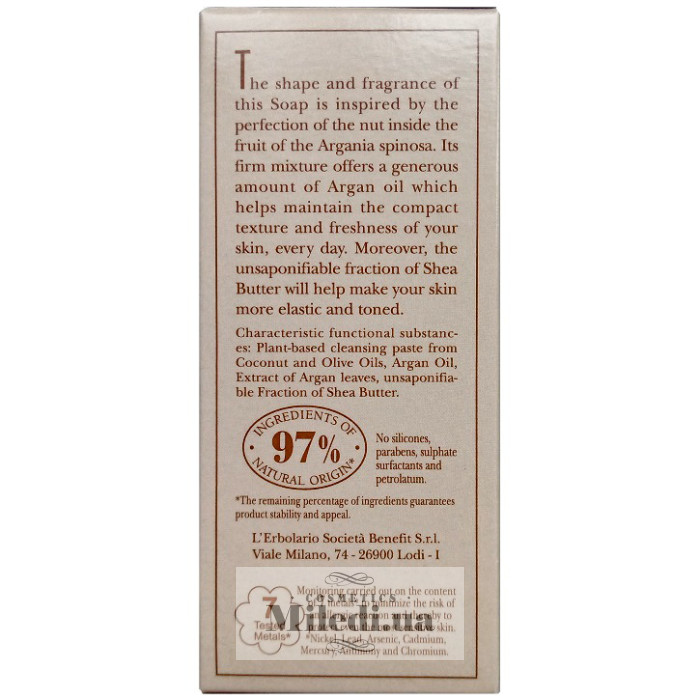 Мило упаковане у фірмову коробку L'Erbolario, що дозволяє його подавати як ароматний подарунок.