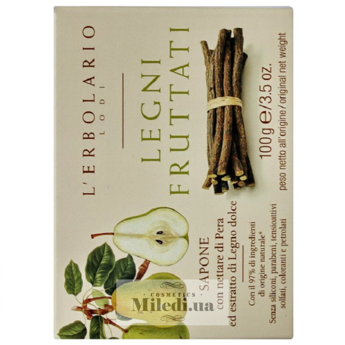 Натуральне мило має приємний грушево-фруктовий аромат, що надає шкірі витонченого паху. Воно ефективно усуває всі забруднення шкіри, не травмуючи її епідермальний бар'єр.