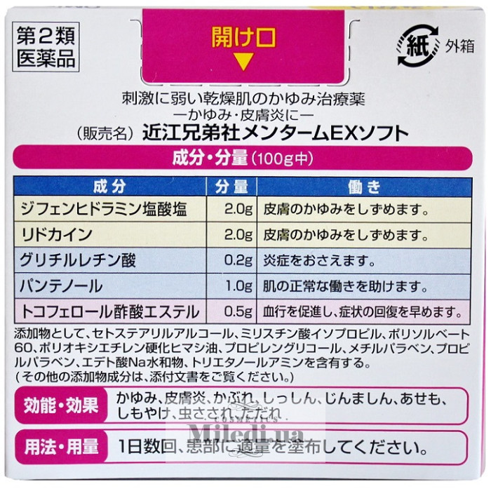 Лікувальні інгібуючі компоненти (дифенгідраміну гідрохлорид і лідокаїн) крему моментально усувають прояви сверблячки та запалень на шкірі тіла.