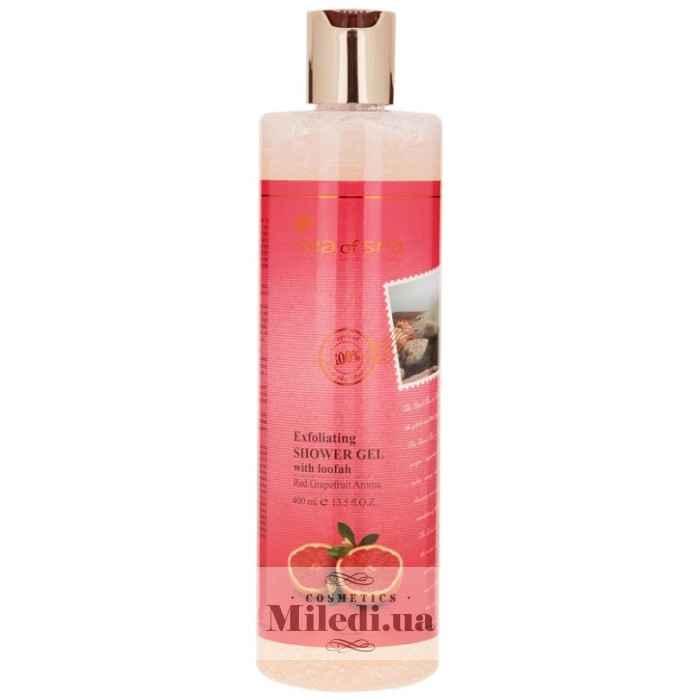 Гель для душу забезпечує чудовий СПА догляд за тілом. Волокна натуральної люфи дають інтенсивний ефект відлущування. Його застосування допомагає глибоко очистити шкіру. Гель надає мікро масажну дію на шкірний покрив.