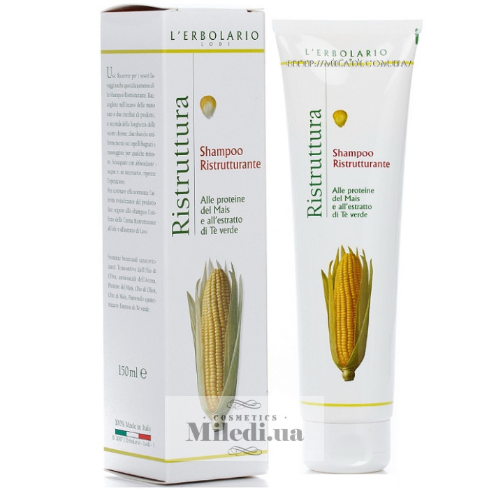 Шампунь L'Erbolario для відновлення структури волосся з білками кукурудзи, 150 мл