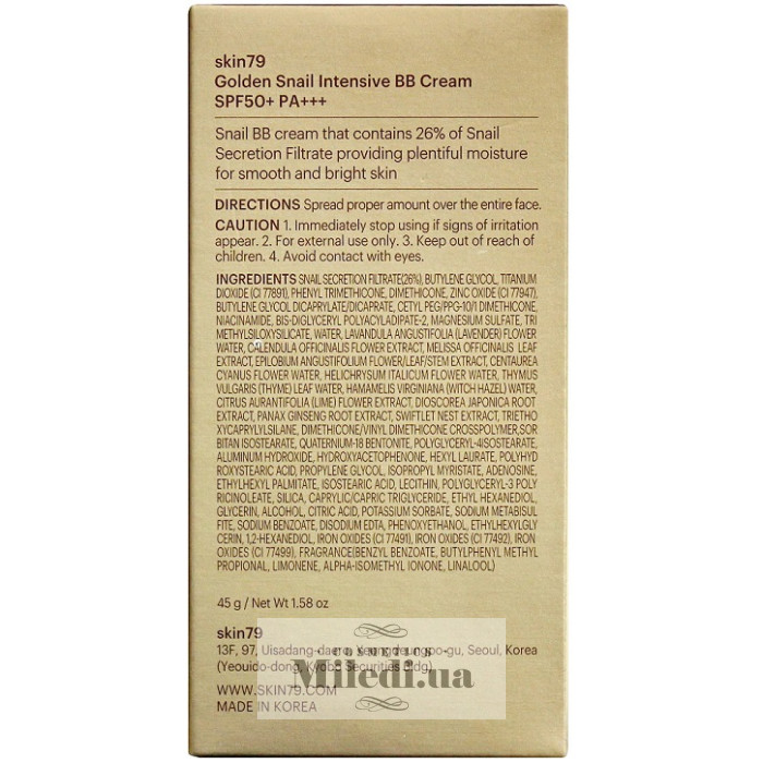 ВВ крем з муцином равлику Skin79 Golden Snail Intensive BB Cream SPF50+, 45 мл