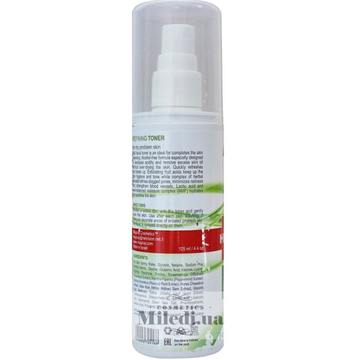 Тонік надає ефективний догляд при проблемах надмірної жирності, акне, прищів та вугрових висипів. Не містить спирту, основа його складу - рослинний антисептик (екстракт гамамелісу). Після його використання - матова, чиста та зволожена шкіра.