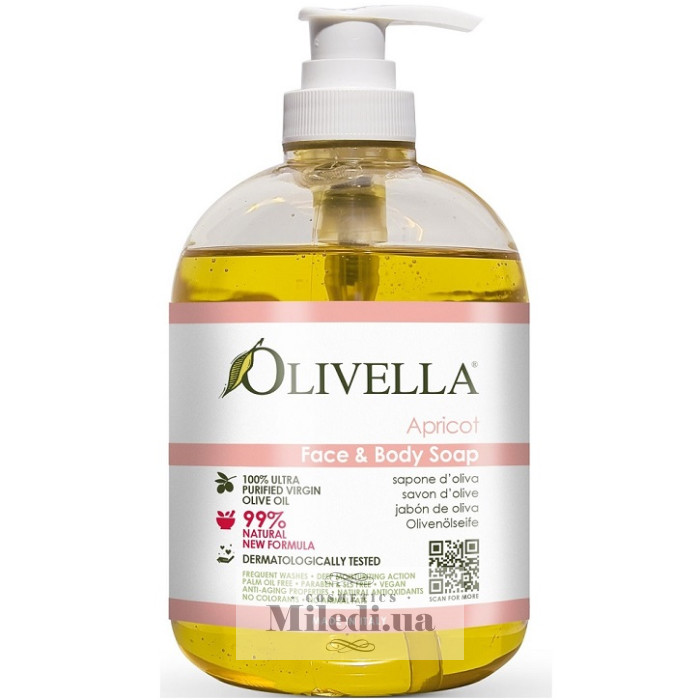 Рідке мило Olivella для обличчя і тіла «Абрикос», 500 мл