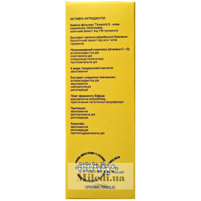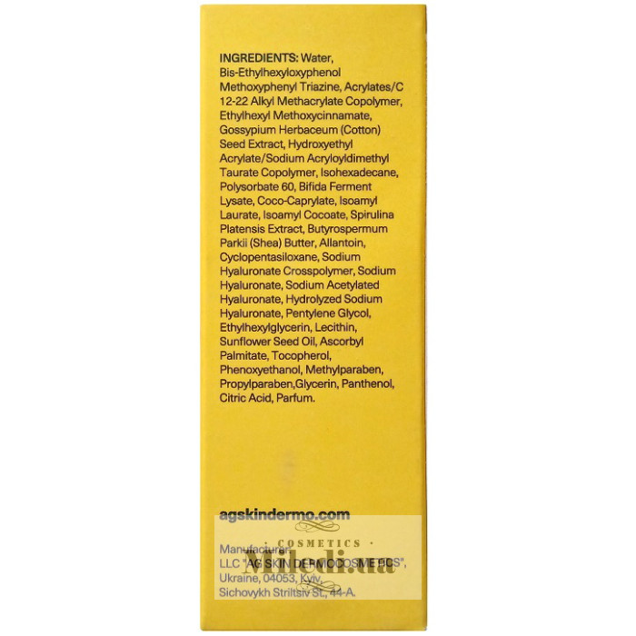 Water, Bis-Ethylhexyloxyphenol Methoxyphenyl Triazine, Acrylates/C 12-22 Alkyl Methacrylate Copolymer, Ethylhexyl Methoxycinnamate, Gossypium Herbaceum (Cotton) Seed Extract, Hydroxyethyl Acrylate/Sodium Acryloyldimethyl Taurate Copolymer, Isohexadecane, Polysorbate 60, Bifida Ferment Lysate, Coco-Caprylate, Isoamyl Laurate, Isoamyl Cocoate , Spirulina Platensis Extract, Butyrospermum Parkii (Shea) Butter, Allantoin, Cyclopentasiloxane, Sodium Hyaluronate Crosspolymer, Sodium Hyaluronate, Sodium Acetylated Hyaluronate, Hydrolyzed Sodium Hyaluronate, Pentylene Glycol, Ethylhexylglycerin, Lecithin, Sunflower Seed Oil, Ascorbyl Palmitate, Tocopherol, Phenoxyethanol, Methylparaben, Propylparaben,Glycerin, Panthenol, Citric Acid, Parfum